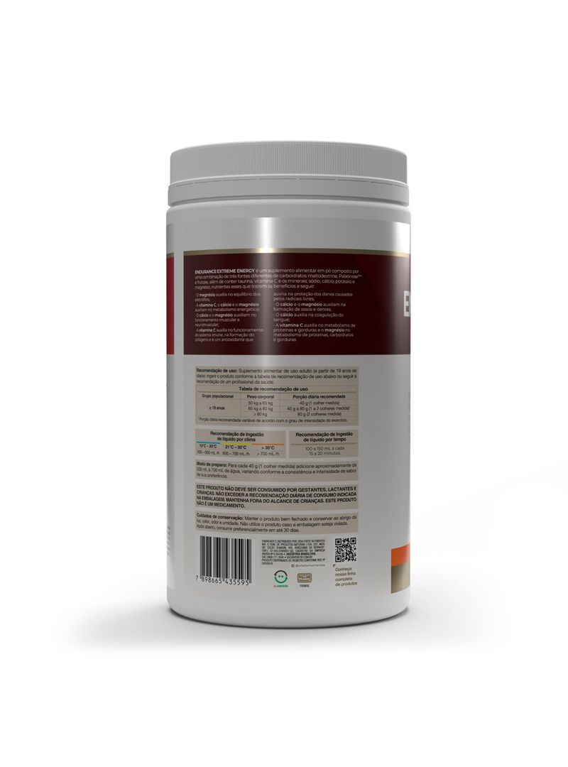 ENDURANCE® EXTREME ENERGY Suplemento alimentar em pó composto por uma combinação de três fontes diferentes de carboidratos: maltodextrina, Palatinose™ e frutose, além de taurina, vitamina C e os minerais sódio, cálcio, potássio e magnésio