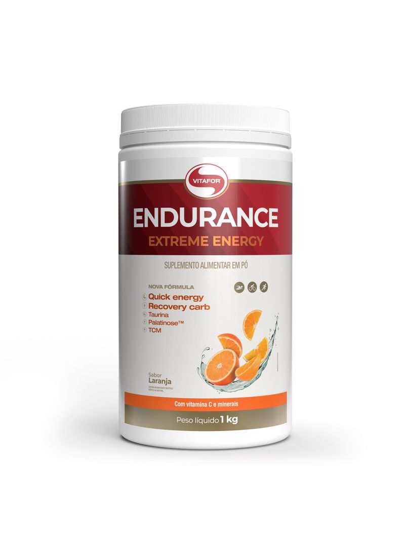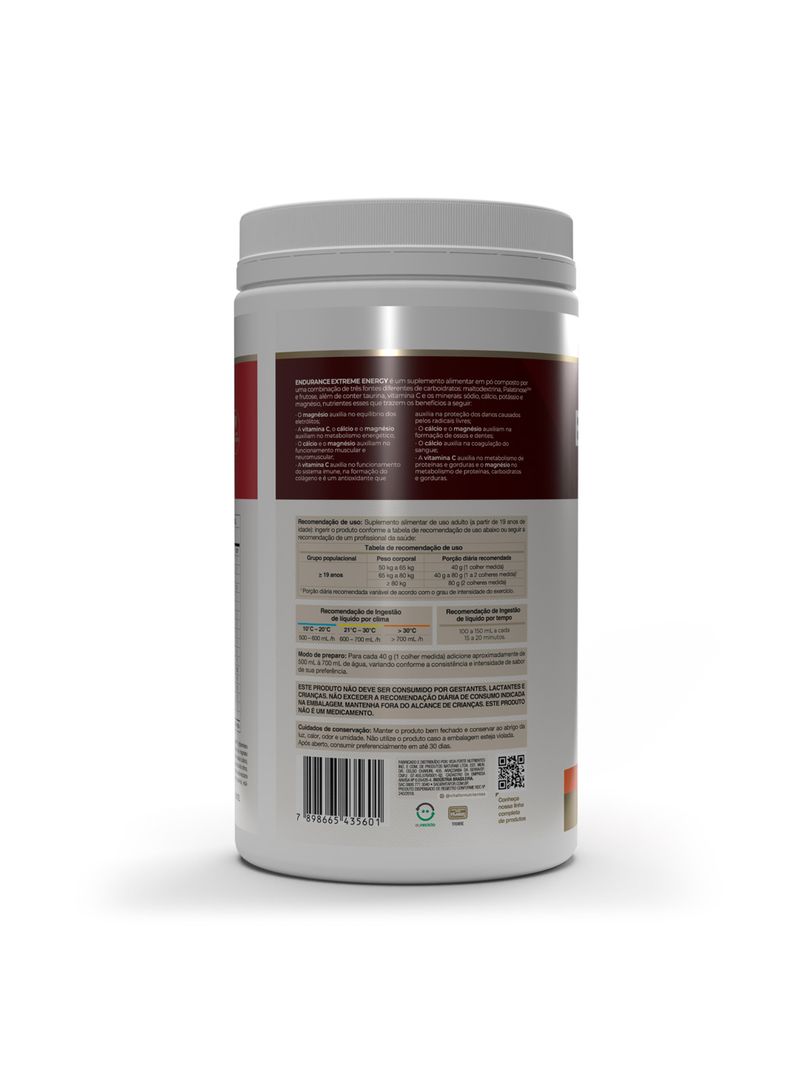 ENDURANCE® EXTREME ENERGY Suplemento alimentar em pó composto por uma combinação de três fontes diferentes de carboidratos: maltodextrina, Palatinose™ e frutose, além de taurina, vitamina C e os minerais sódio, cálcio, potássio e magnésio
