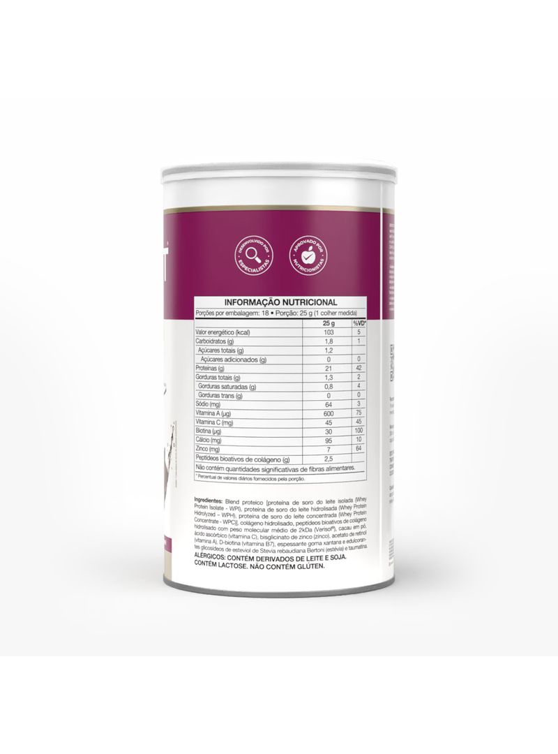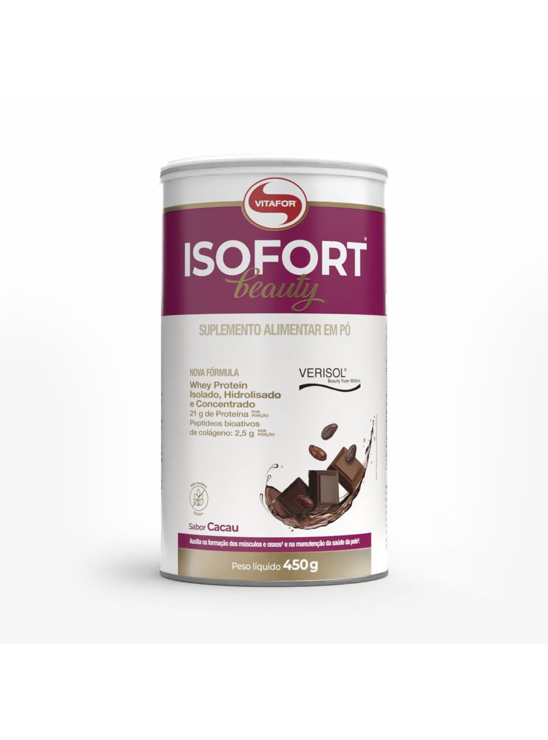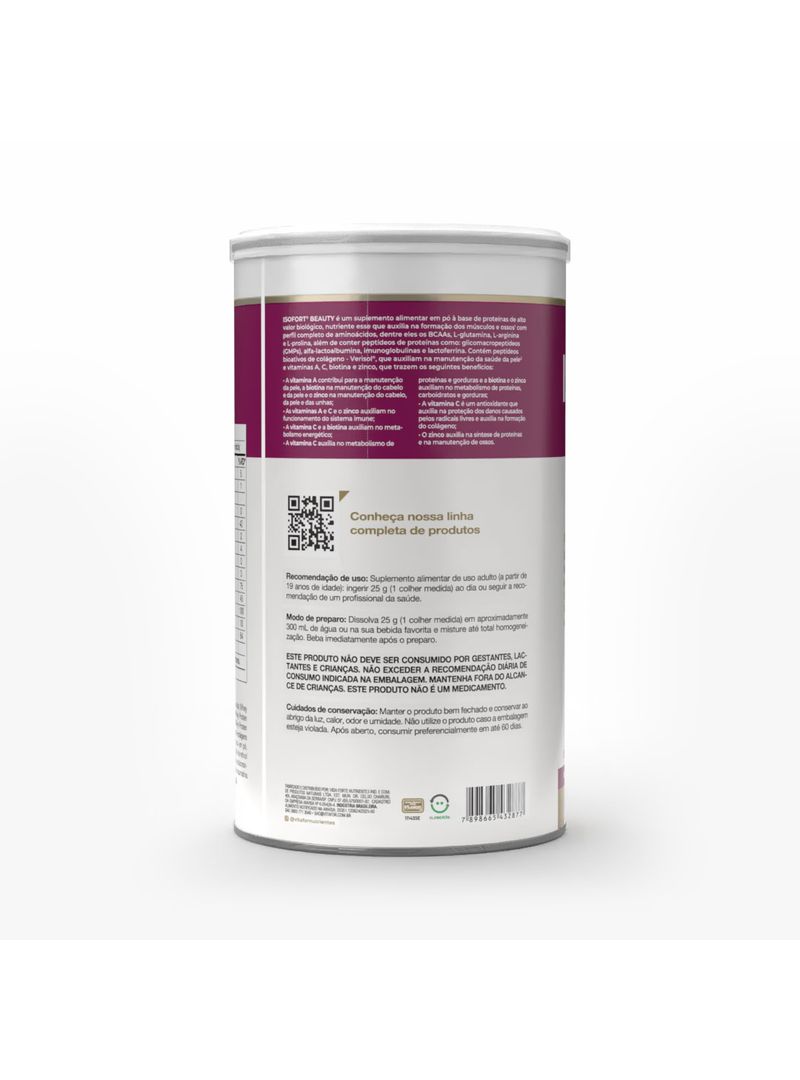 ISOFORT® BEAUTY é um suplemento alimentar em pó à base de proteínas de alto valor biológico, nutriente esse que auxilia na formação dos músculos e ossos com perfil completo de aminoácidos, dentre eles os BCAAs, L-glutamina, L-arginina e L-prolina, além de conter peptídeos de proteínas como: glicomacropeptídeos (GMPs), alfa-lactoalbumina, imunoglobulinas e lactoferrina. Contém peptídeos bioativos de colágeno – Verisol®, que auxiliam na manutenção da saúde da pele e vitaminas A, C, biotina e zinco.