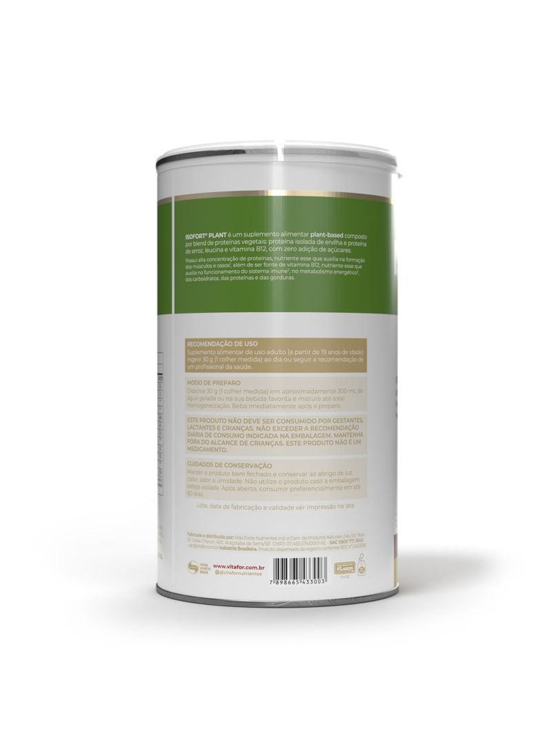 ISOFORT® PLANT é um suplemento alimentar composto por um blend de proteínas vegetais: proteína isolada de ervilha e proteína de arroz.