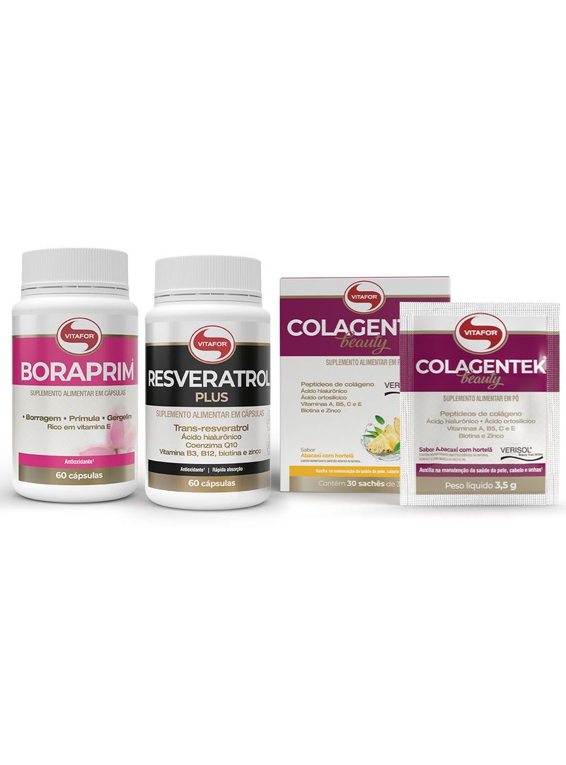 Um Kit criado especialmente para todas as mães, com produtos pensados e desenvolvidos para auxiliar nessa rotina tão intensa do dia-a-dia, com um toque de sabor refrescante de abacaxi com hortelã. Enquanto você cuida de todos, a Vitafor cuida de você! O Kit Kit manutenção e cuidados é composto por: 1 unidade de Boraprim – 60 cap + 1 unidade de Resveratrol Plus – 60 cap + 1 unidade de Colagentek beauty – 30 sachês 3,5g abacaxi c/ hortelã – Vitafor