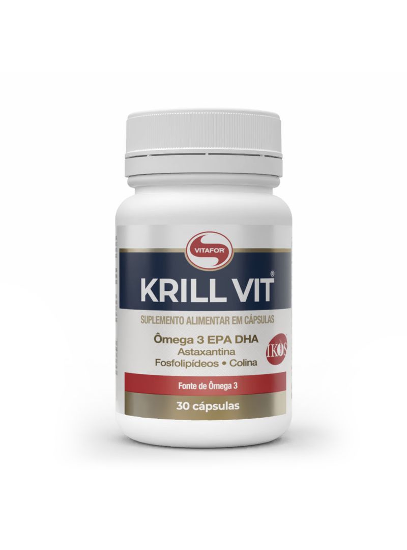 KRILL VIT® da Vitafor é um suplemento premium de óleo de krill, desenvolvido para oferecer uma fonte concentrada de ácidos graxos essenciais e antioxidantes naturais. Cada cápsula contém 300 mg de EPA e 200 mg de DHA, além de colina e astaxantina, substâncias que auxiliam na saúde cardiovascular, cerebral e na proteção contra o estresse oxidativo.