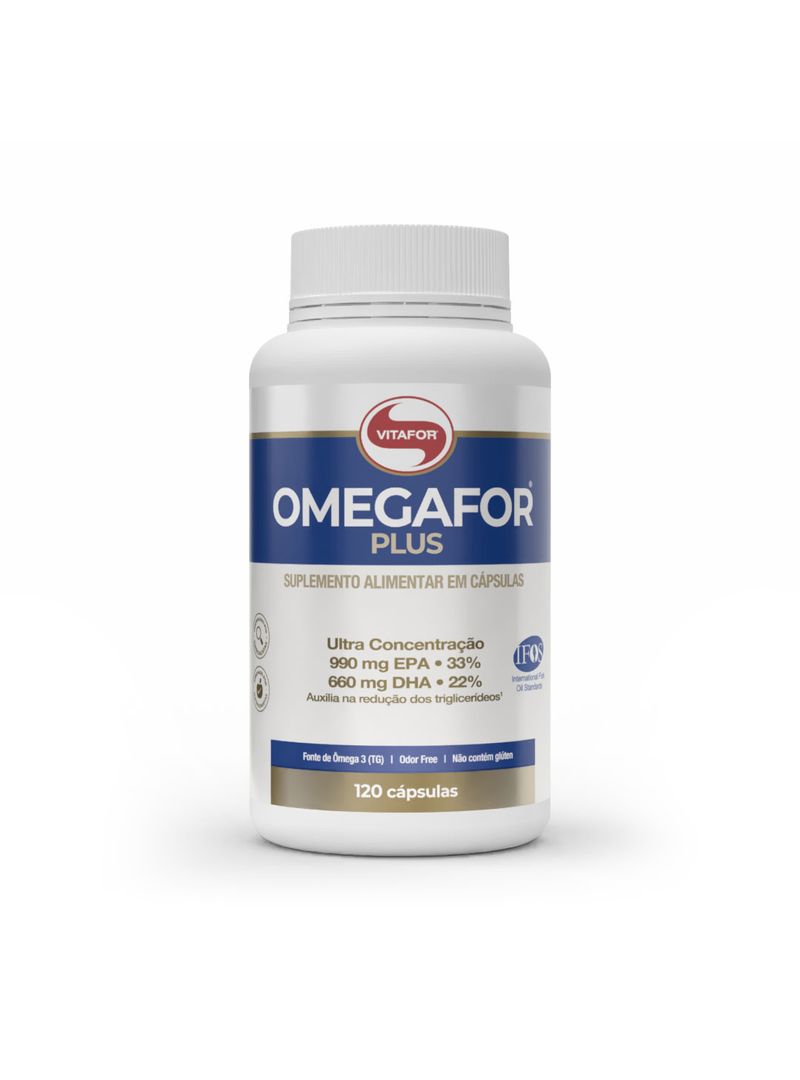 OMEGAFOR® PLUS® é um suplemento alimentar de óleo de peixe em cápsulas. Possui alta concentração de seus derivados, ácido eicosapentaenóico (EPA) – 990mg e ácido docosahexaenóico (DHA) – 660mg, extraído através de processo de alta tecnologia onde se isenta de impurezas e metais pesados, certificado pelo Programa Internacional de Padrões de Óleo de Peixe (IFOS ™).
