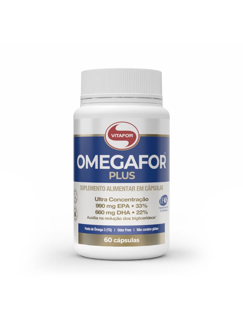 OMEGAFOR® PLUS® é um suplemento alimentar de óleo de peixe em cápsulas. Possui alta concentração de seus derivados, ácido eicosapentaenóico (EPA) – 990mg e ácido docosahexaenóico (DHA) – 660mg, extraído através de processo de alta tecnologia onde se isenta de impurezas e metais pesados, certificado pelo Programa Internacional de Padrões de Óleo de Peixe (IFOS ™).