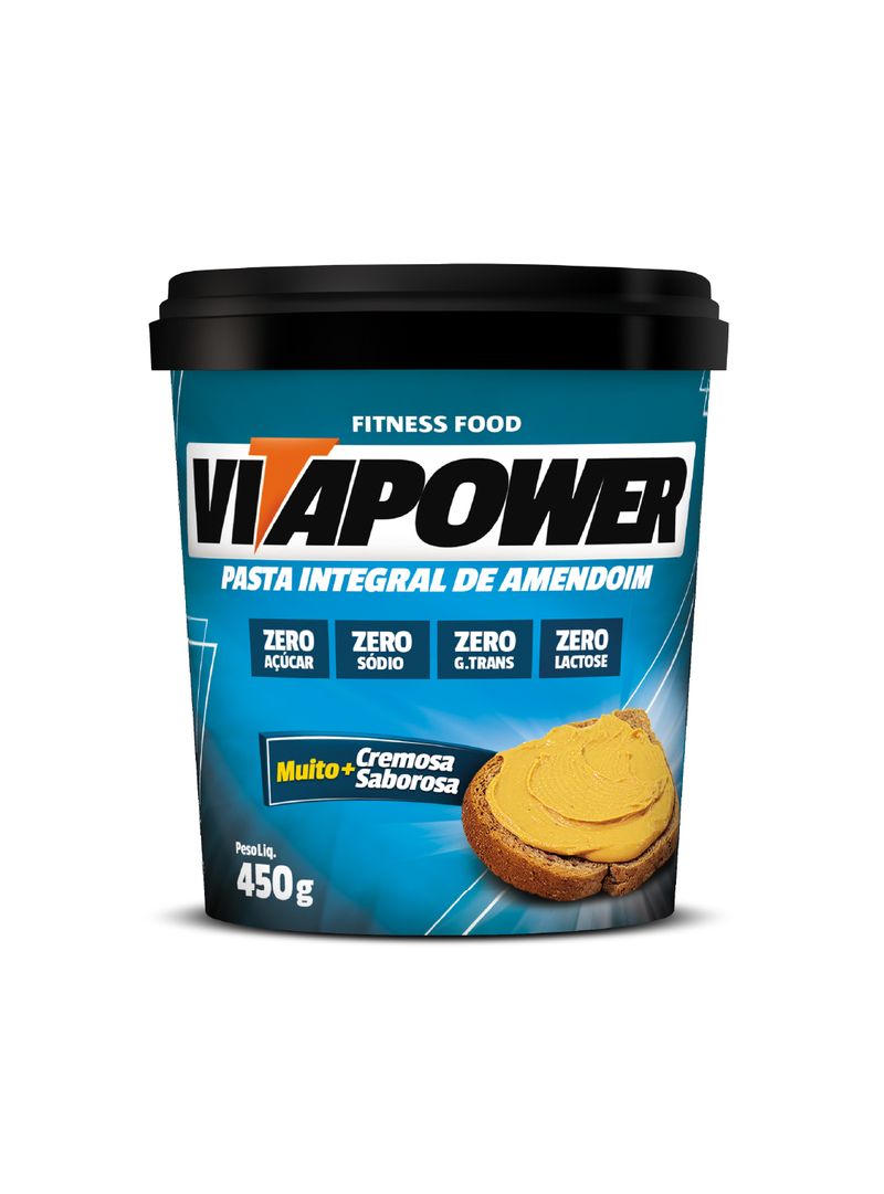 Pasta de amendoim com 8,2g de proteínas por porção (30g); zero açúcar, sódio, lactose e glúten.