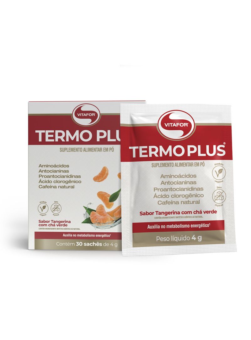 TERMO PLUS® é um suplemento alimentar à base de aminoácidos, café verde, extrato seco de semente de uva, extrato de laranja moro, vitaminas e minerais.