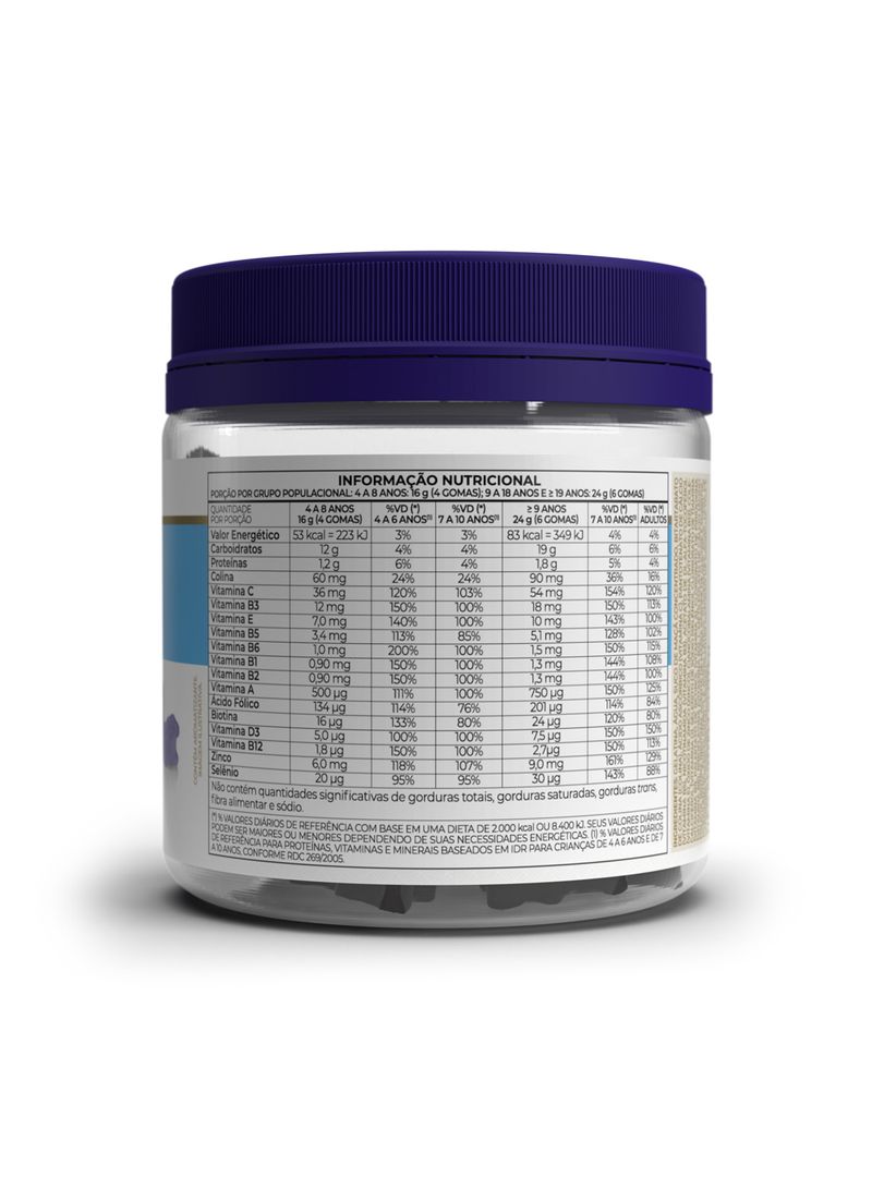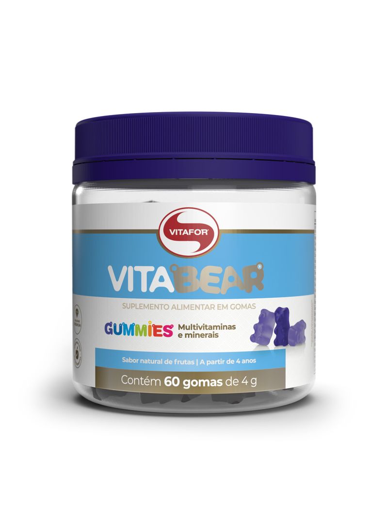VITABEAR® é um suplemento alimentar de vitaminas e minerais em gomas. Benefícios As vitaminas A, B6, B12, C, D, ácido fólico e os minerais selênio e zinco auxiliam no funcionamento do sistema imune.
