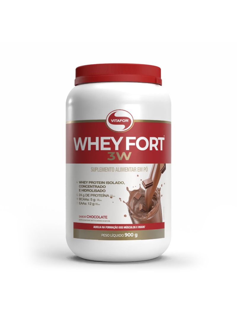 WHEY FORT® 3W: Whey Protein Isolado, Concentrado e Hidrolisado sabor Chocolate 900g